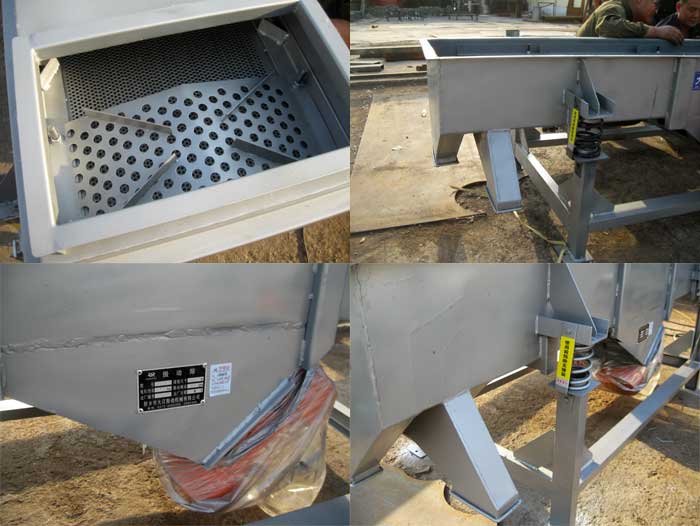 直線振動篩是種比較常見的振動篩分設(shè)備,利用振動電機(jī)激振作為振動動力來源,使物料在篩網(wǎng)上被拋起,同時(shí)向前作直線運(yùn)動,物料從給料機(jī)均勻地進(jìn)入篩分機(jī)的進(jìn)料口,通過多層篩網(wǎng)產(chǎn)生數(shù)種規(guī)格的篩上物、篩下物、分別從各自的出口排出。