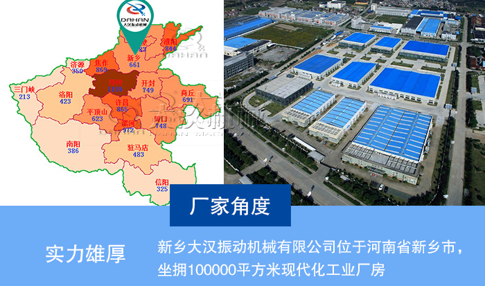 新鄉大漢振動機械有限公司位于河南省新鄉市,坐擁100000平方米現代化工業廠房,各種焊接設備能夠達到300余臺,而且,公司技術人員有上百名,廠家實力頗為雄厚。