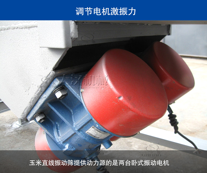 玉米直線振動篩提供動力源的是兩臺臥式振動電機,在設備出廠時電機的激振力是根據(jù)用戶提供數(shù)據(jù)調(diào)節(jié)好的,在實際使用過程中如出想提高產(chǎn)量也可通過調(diào)節(jié)兩臺電機偏心重錘的方式增加激振力實現(xiàn)提高產(chǎn)量。這里要注意的時在調(diào)節(jié)激振力前請先咨詢您的供應商再進行合理調(diào)節(jié)。