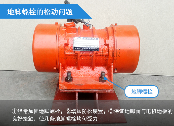 預防措施:①經常加固地腳螺栓;②增加防松裝置;③保證地腳面與電機地板的良好接觸,使幾條地腳螺栓均勻受力。