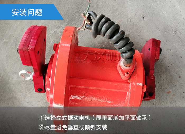 預防措施:①選擇立式振動電機(即里面增加平面軸承);②盡量避免垂直或傾斜安裝。