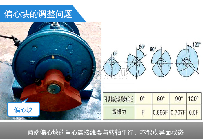 調整偏心塊時,誤把兩端偏心塊的方向調反,使振動電機產生個空間扭矩,使振動電機在非正常狀態下工作,進而引起燒毀。因此調整偏心塊時,定要注意其對稱性,即兩端偏心塊要兩兩對應,或者說是兩端偏心塊的重心連接線要與轉軸平行,不能成異面狀態。