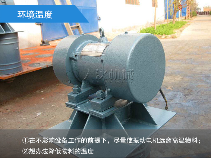 預防措施:①在不影響設備工作的前提下,盡量使振動電機遠離高溫物料;②想辦法降低物料的溫度。