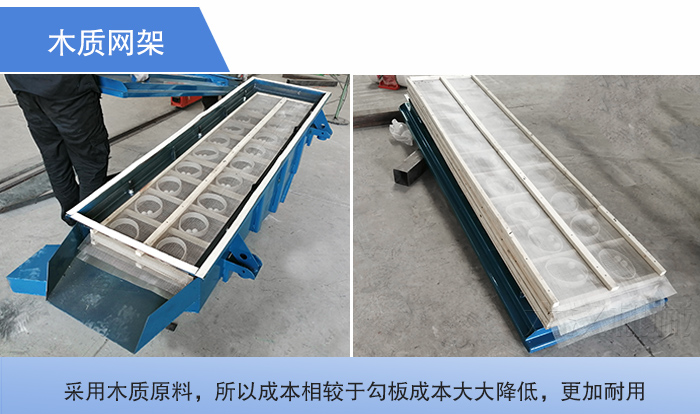 這種網(wǎng)架般是以優(yōu)質(zhì)的白楊木,紅松木和白松木為原材料加工而成,由于采用木質(zhì)原料,所以成本相較于勾板成本大大降低,更加耐用。但是木質(zhì)網(wǎng)架如果用的時(shí)間久些會(huì)掉些木屑,木屑旦和用戶的原料混合在起的話,會(huì)嚴(yán)重的影響用戶篩分物料的質(zhì)量;并且如果篩分量過大的話會(huì)可能會(huì)出現(xiàn)直線篩網(wǎng)架斷裂現(xiàn)象。