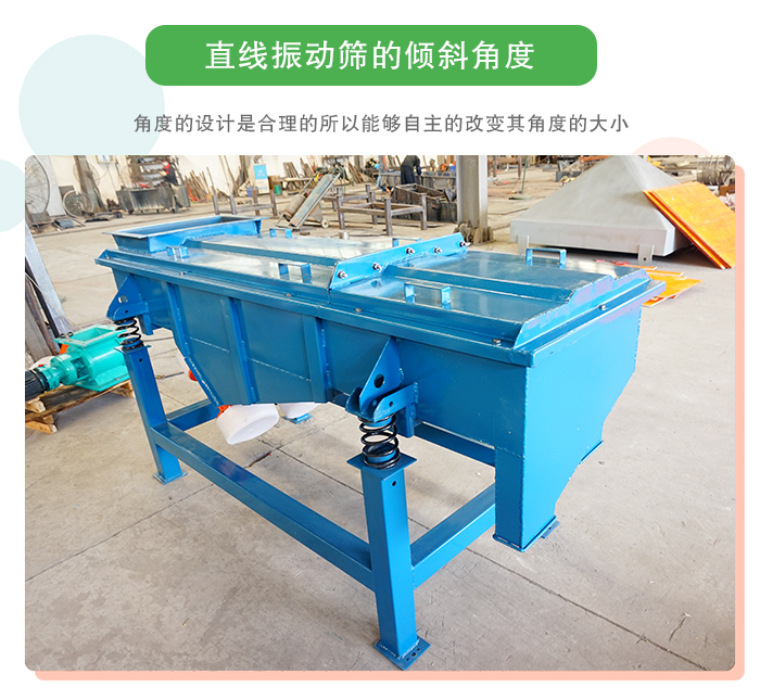不知道大家在使用直線篩的時候會不會出現堵料的問題若是由,那么大家就要注意了其主要原因是因為直線篩的斜角的角度問題,其角度越大出料的速度也就會比較快所以,大家在選擇直線振動篩的時候也要注意角度問題,但直線振動篩的角度的設計是合理的所以能夠自主的改變其角度的大小。