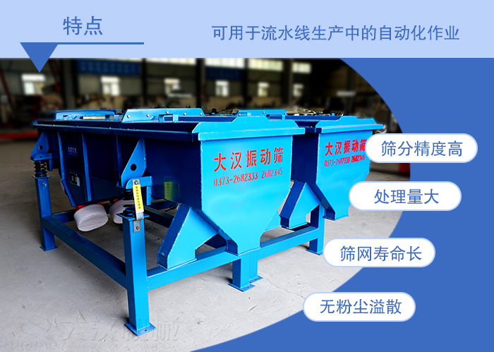 采用碳鋼材質(zhì),木質(zhì)網(wǎng)架結(jié)構(gòu)直線振動篩,裝配有防塵蓋,密封篩分。該機(jī)體積小方便移動,整機(jī)為碳鋼材質(zhì),無衛(wèi)生級別要求。